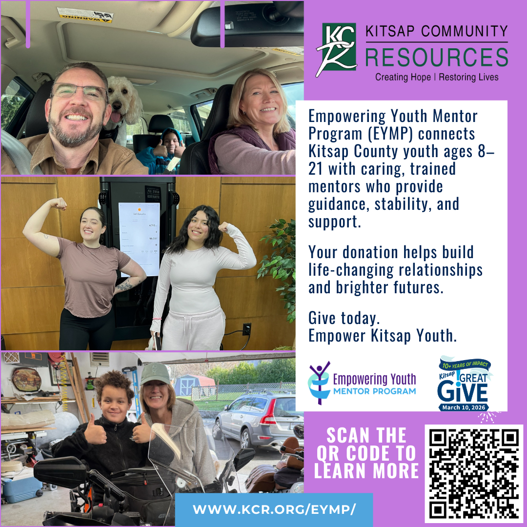 Kitsap Community Resources (KCR) is a nonprofit social services agency. We are committed to creating hope and opportunity for all low-income Kitsap County residents by providing resources that promote self-sufficiency and stability. We exist with a clear vision of creating a community where everyone has an opportunity to thrive.