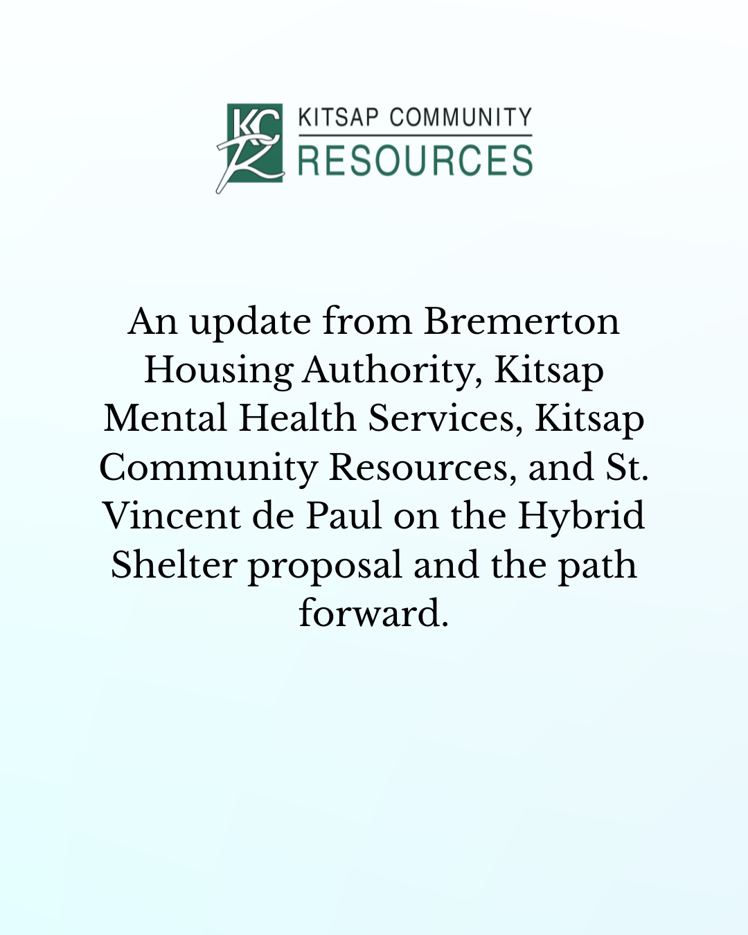 Kitsap Community Resources (KCR) is a nonprofit social services agency. We are committed to creating hope and opportunity for all low-income Kitsap County residents by providing resources that promote self-sufficiency and stability. We exist with a clear vision of creating a community where everyone has an opportunity to thrive.