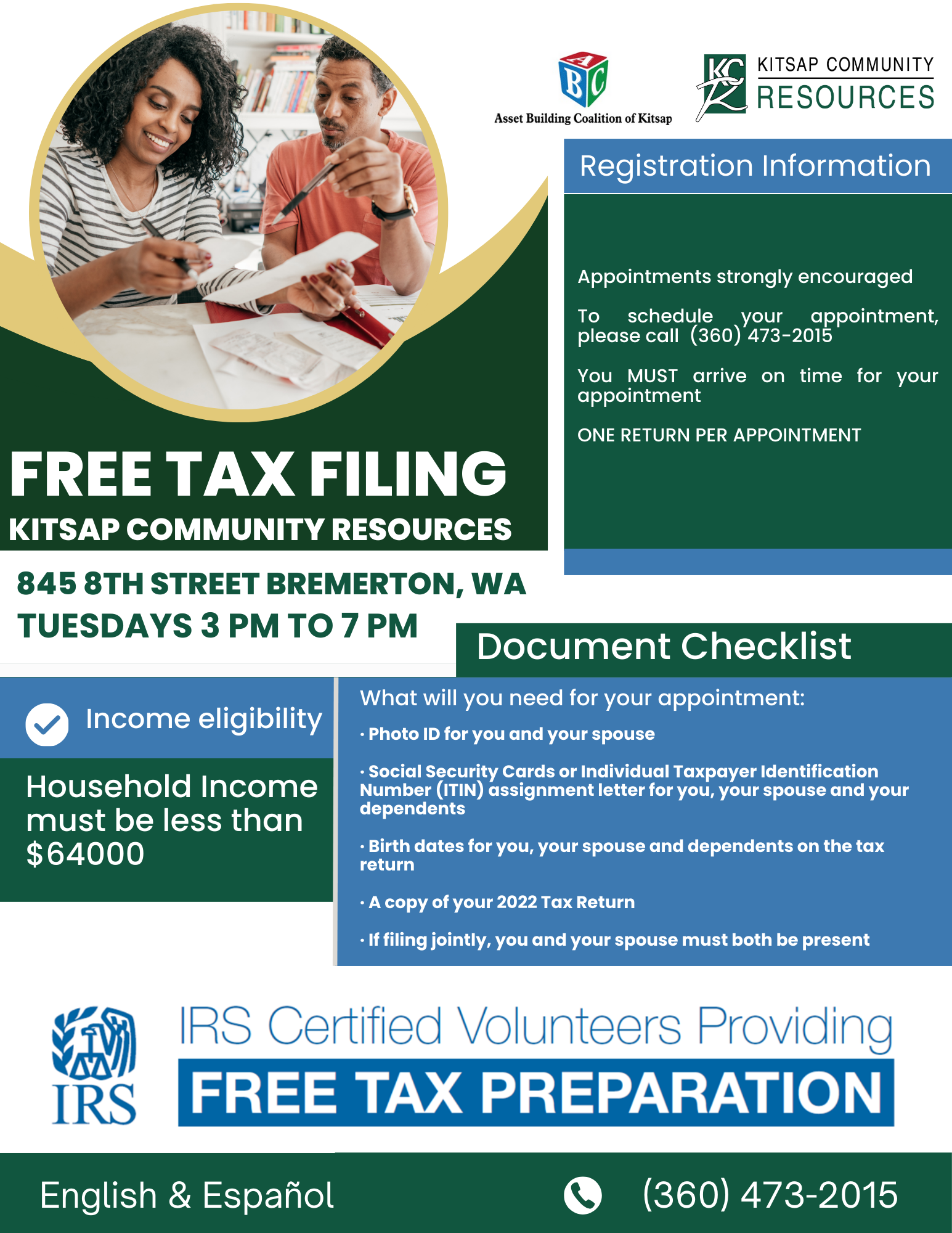 Did you know that Kitsap Community Resources is offering FREE tax preparation services for families in Kitsap County?