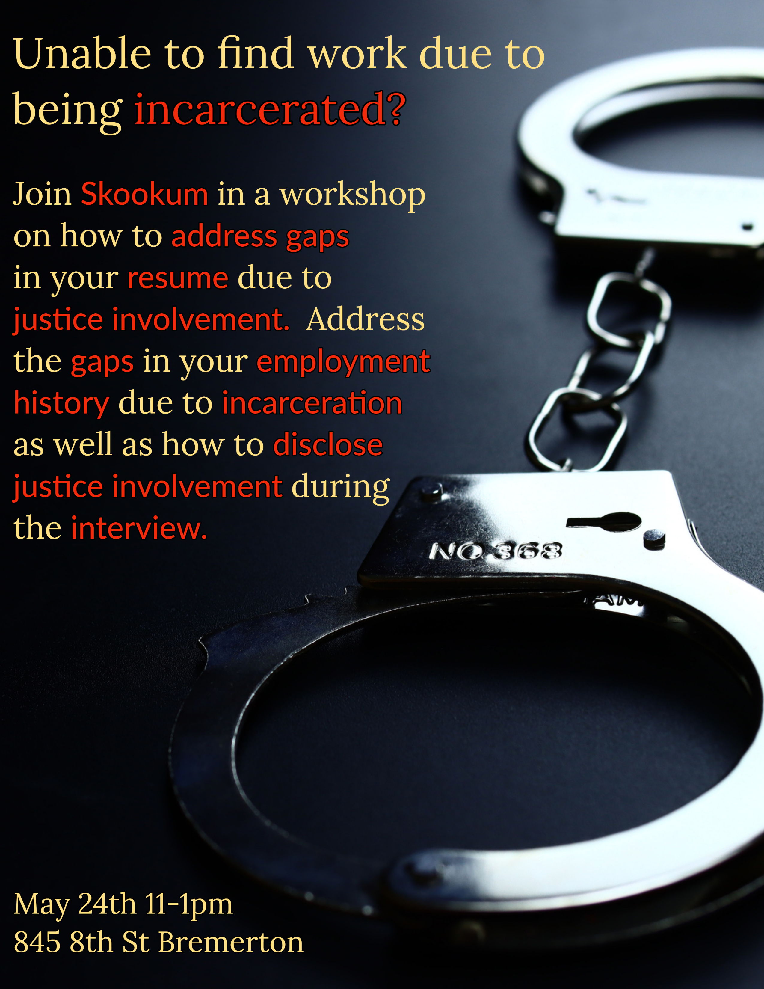 Join Skookum in a workshop on how to address gaps in your resume due to justice involvement.