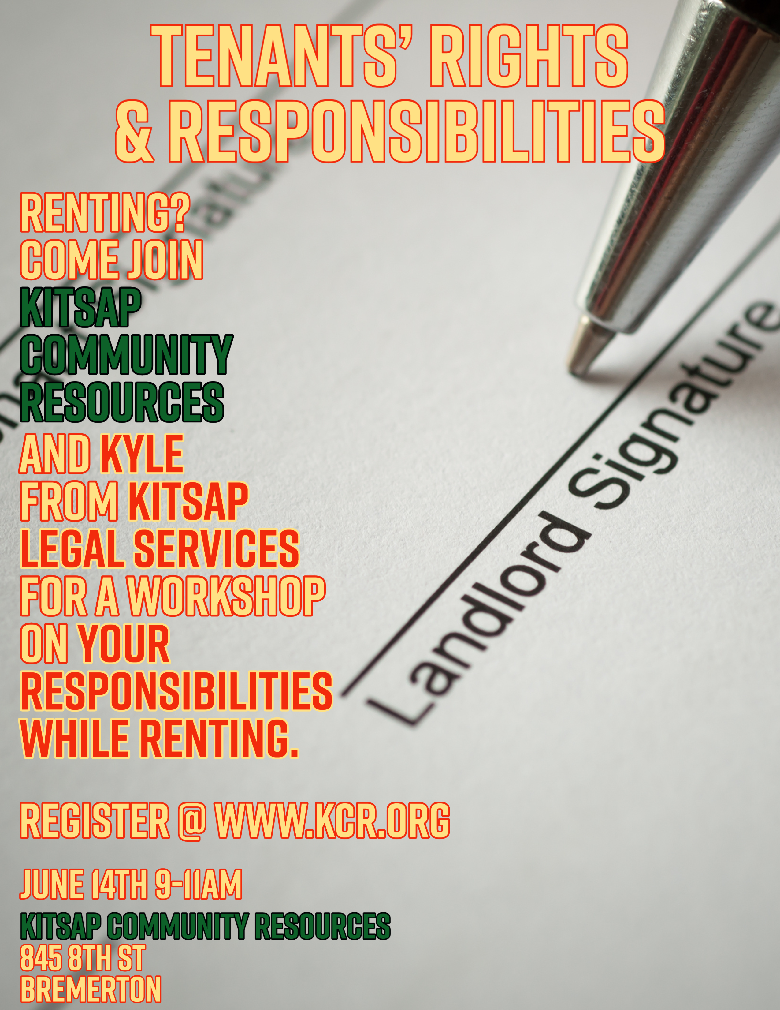 Renting? Do you know your responsibilities and rights? Join Kyle from Kitsap Legal Services and come to a workshop on your rights while renting as well as your responsibilities.