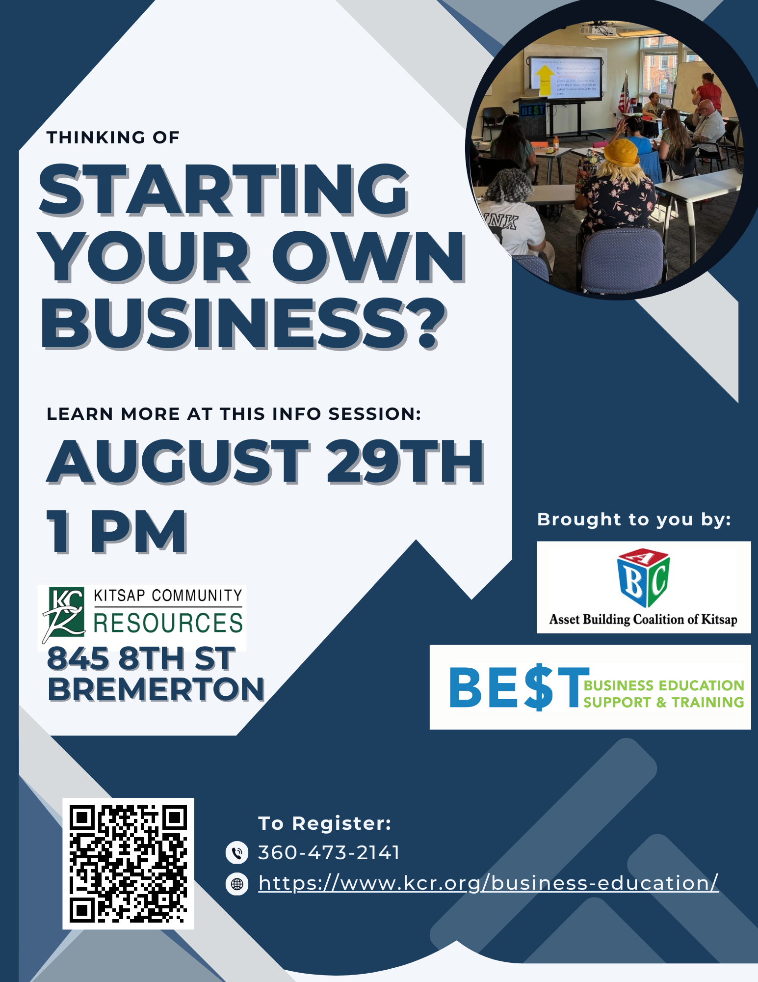 Event is Thursday, August 29th at 1 PM at Kitsap Community Resources, 845 8th Street, Room 203 in Bremerton.