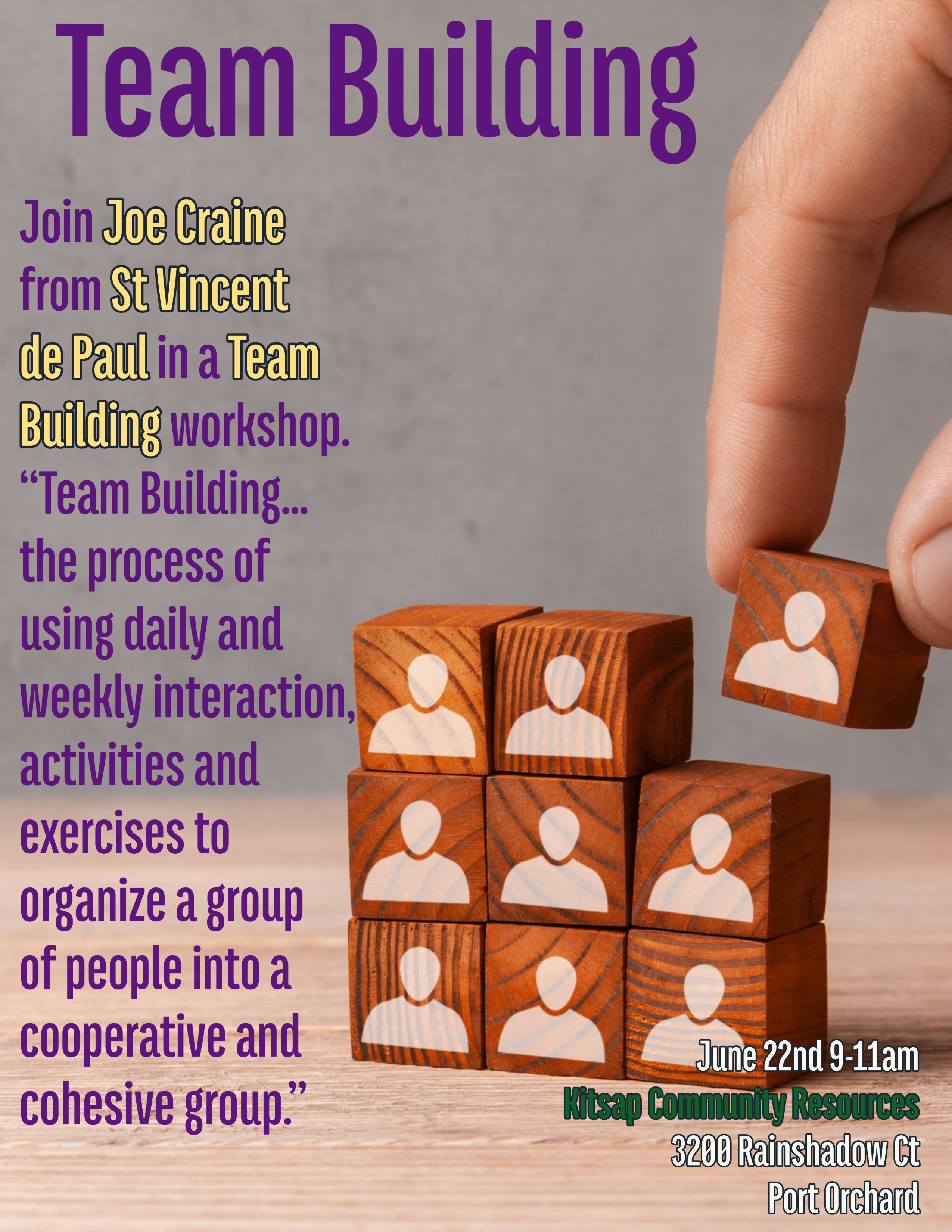 Join Joe, the Excecitive Director of St. Vincent d Paul’s in a workshop featuring Team Building. Come learn what it takes to put a cohesive group together and keep it going.