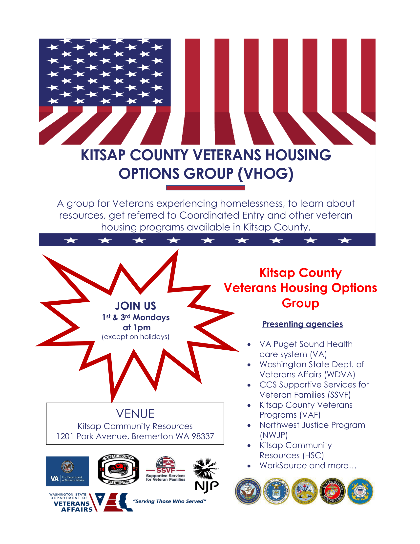 For more information, application form, and for the nearest VSO location, please click here: Kitsap County Veterans Program